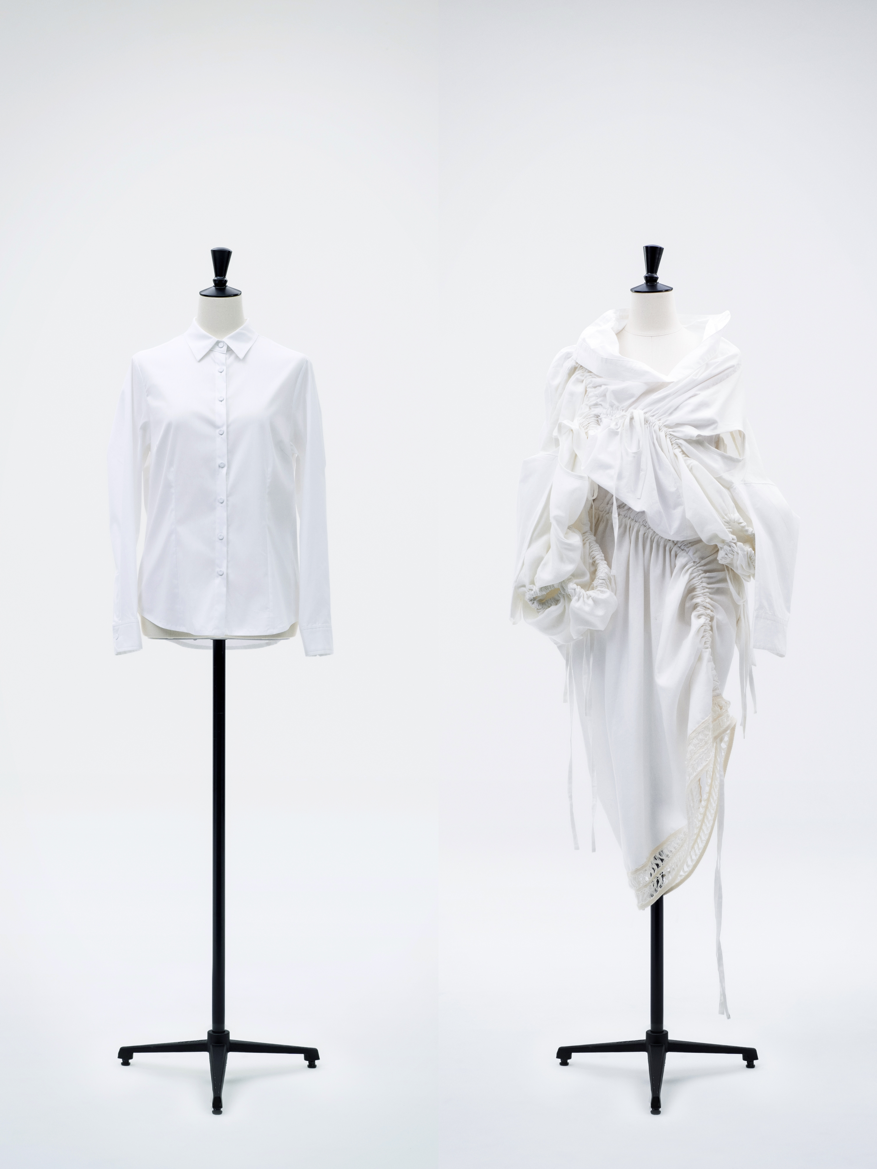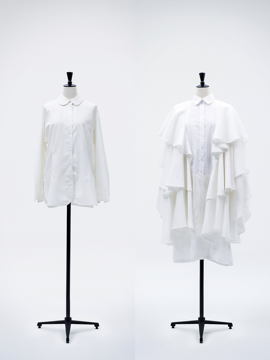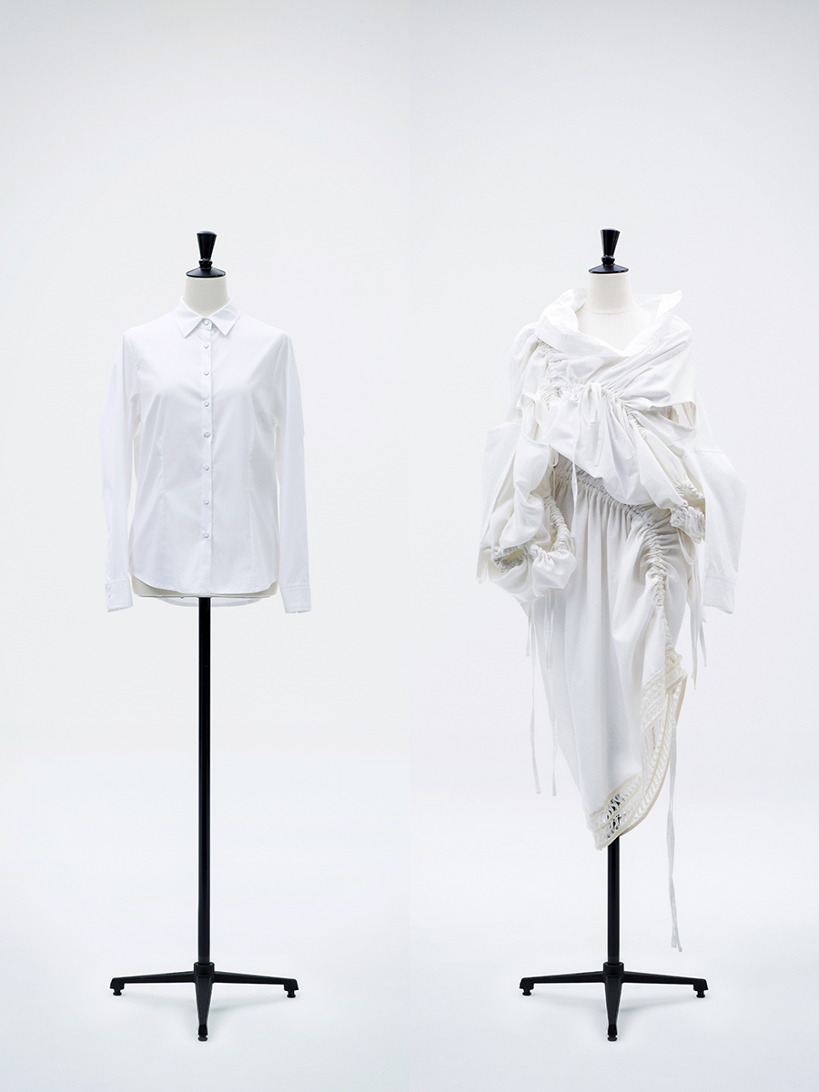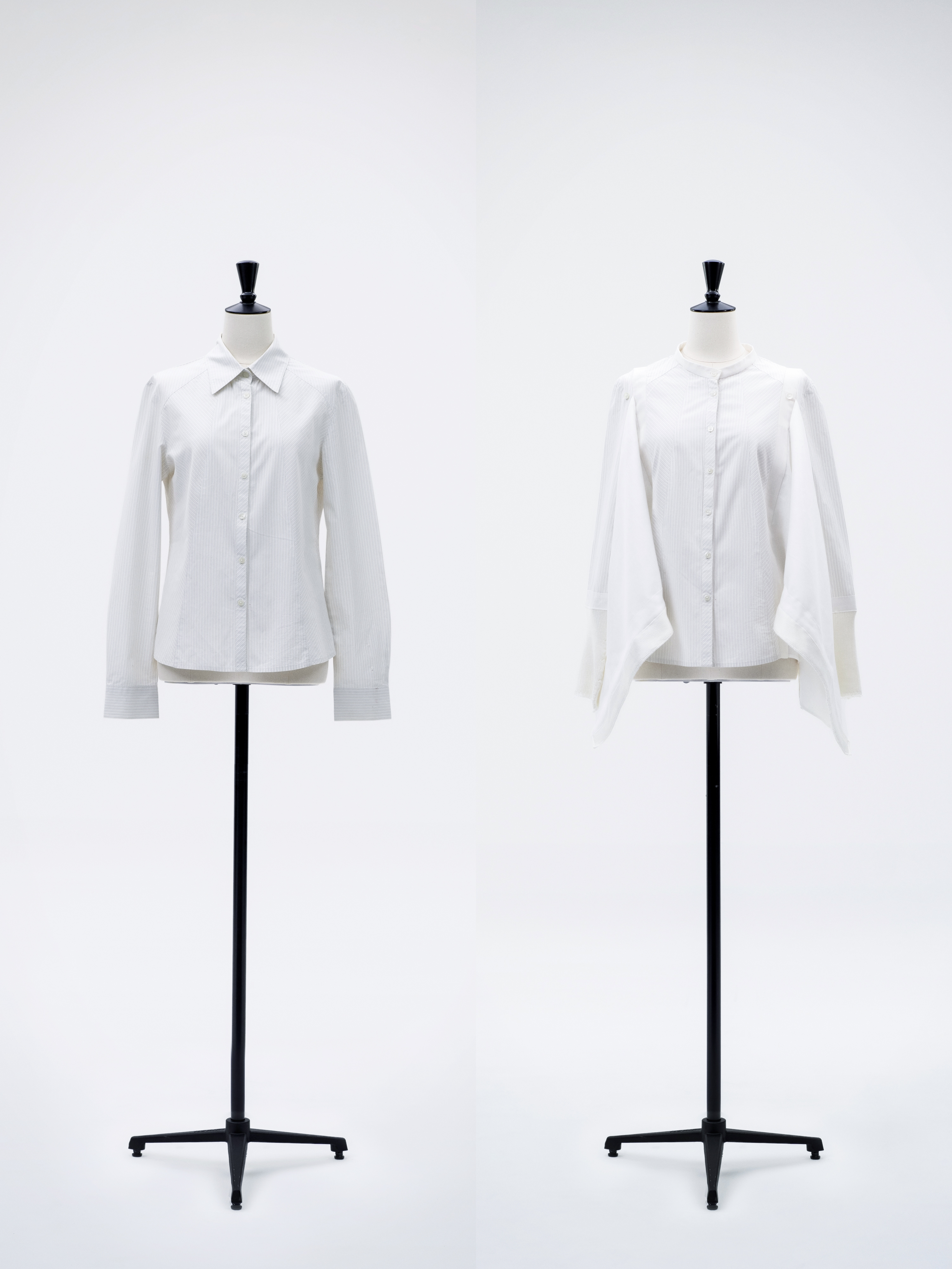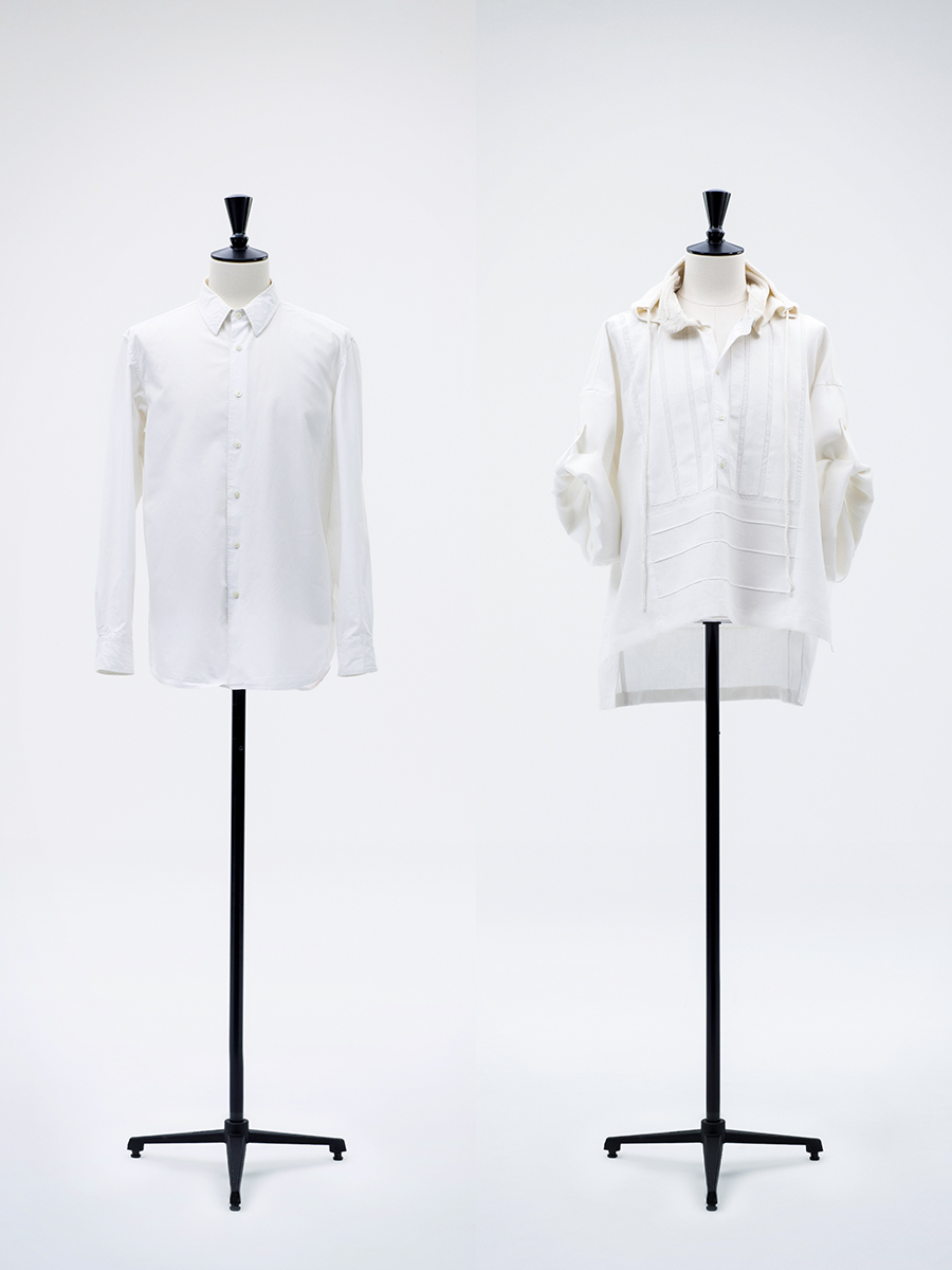 Made-to-order garments usually require physically meeting a client, and an understanding of clients’ needs and sizes through real-life dialogues and measurements. For this project, we delivered final products with all client interactions taken online. In order to create a truly one-of-a-kind garment for each of them, we asked them to provide a white shirt of their own, and asked about stories that were tied to those shirts. We then, brought the white shirt to YUIMA NAKAZATO’s atelier in Tokyo. We used the dialogue as an inspiration to reimagine it, redesign it, and return it to clients as a completely new garment. This is a project where clients and the designer co-create a new garment. In hopes that garments we created together make clients more cheerful, we offered the entire service free of charge as charity.