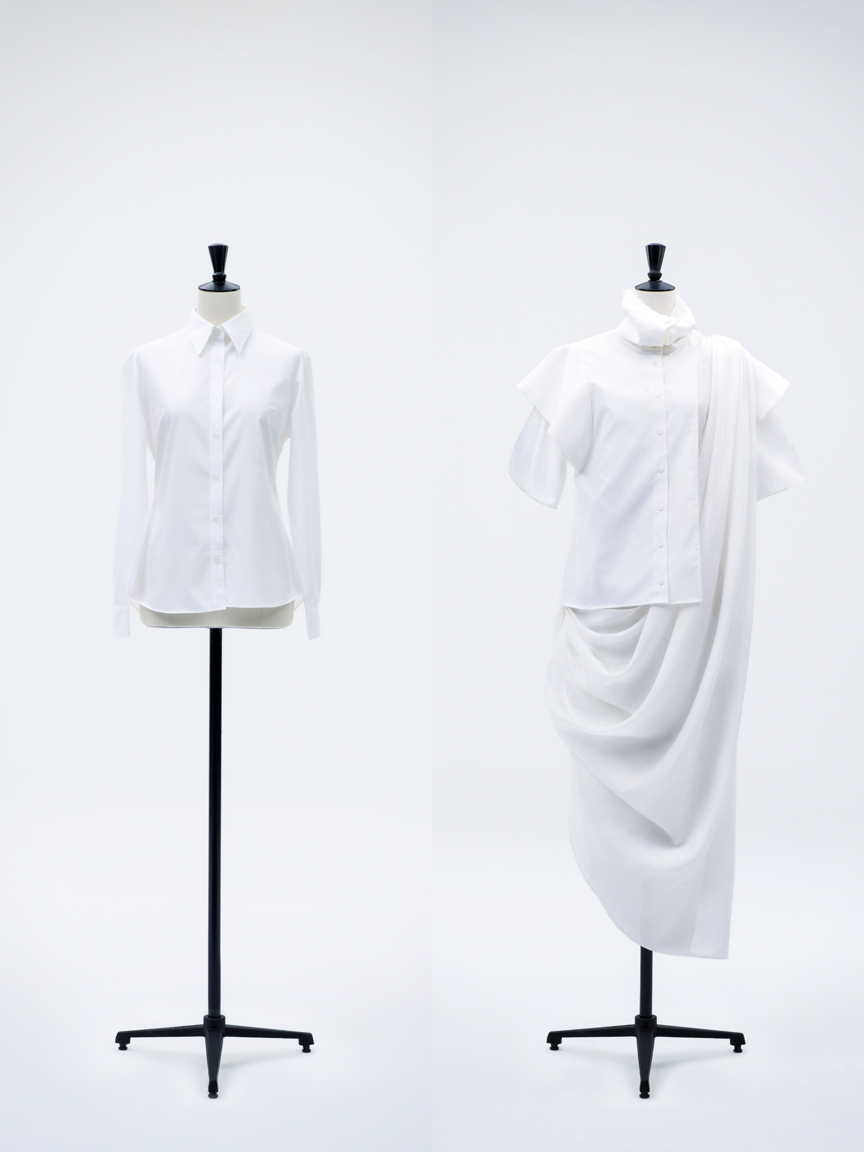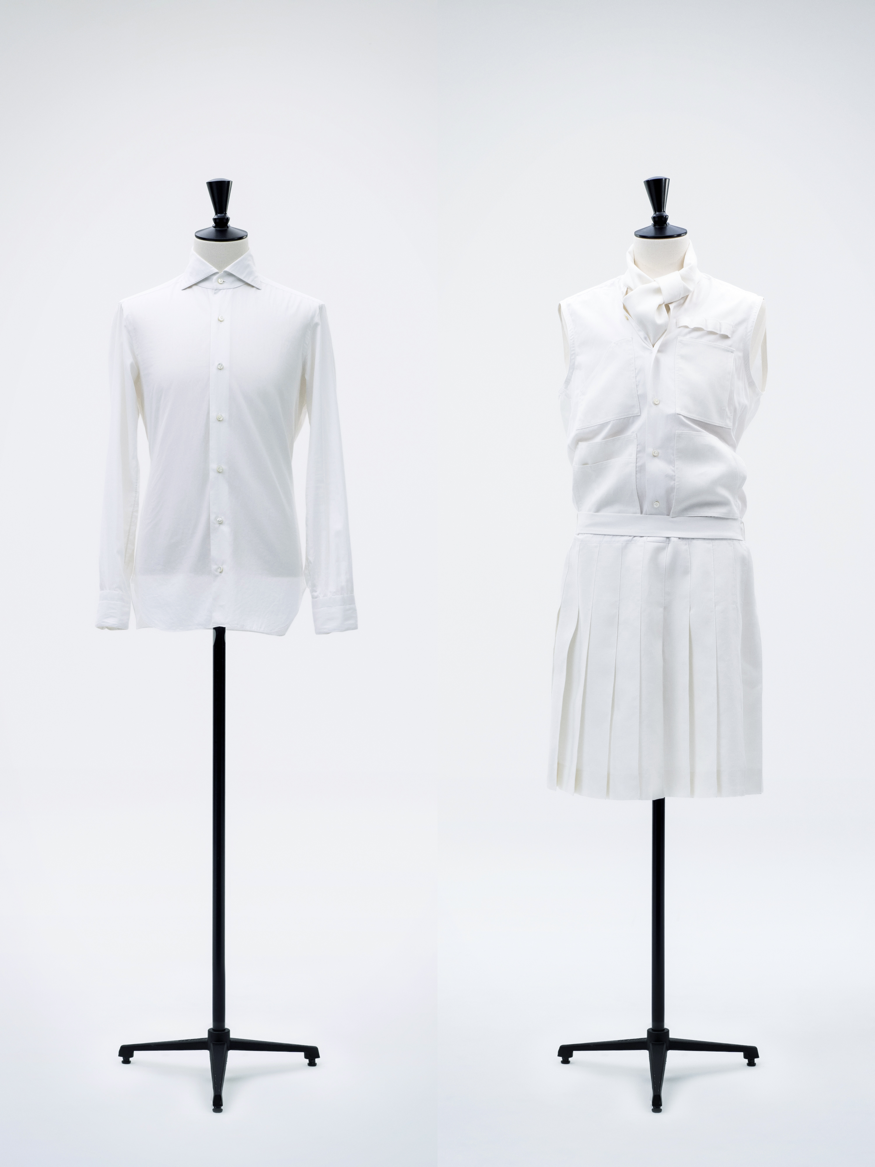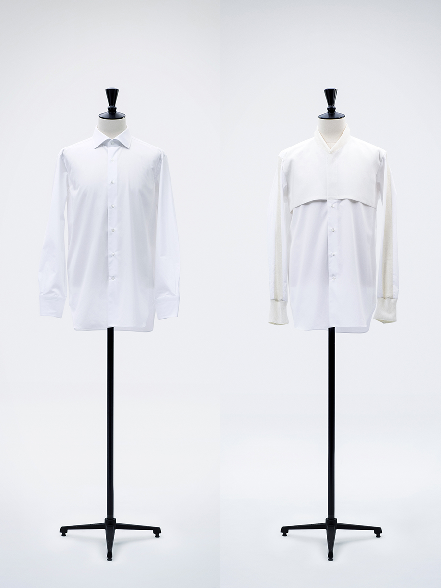 オーダーメイドとは本来、直接着る人にお会いし、お客様との対話や採寸などを行いながら仕立てていくものですが、このプロジェクトではデジタルツールを使いながら1度もお客様にお会いせずに衣服をお届けしました。着る人の人生に寄り添う世界でたった1着の衣服を作るため、お客様の白いシャツをご提供いただき、そこに込められたストーリーをインスピレーションに私たちが仕立て直し、お返しするというお客様と共に創りあげる試みです。また、ファッションを通じて少しでも気持ちをポジティブに、という願いからチャリティーとして無料にて提供させていただきました。