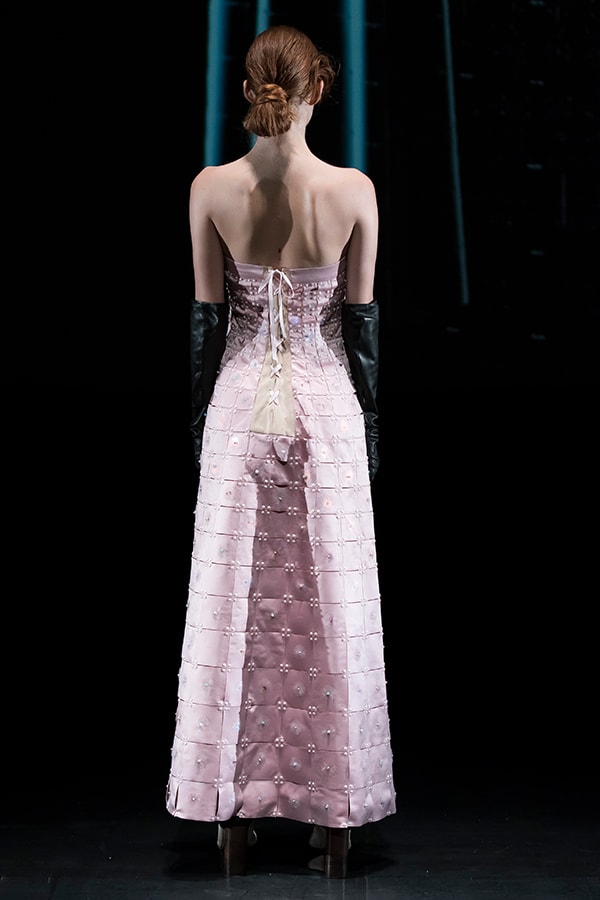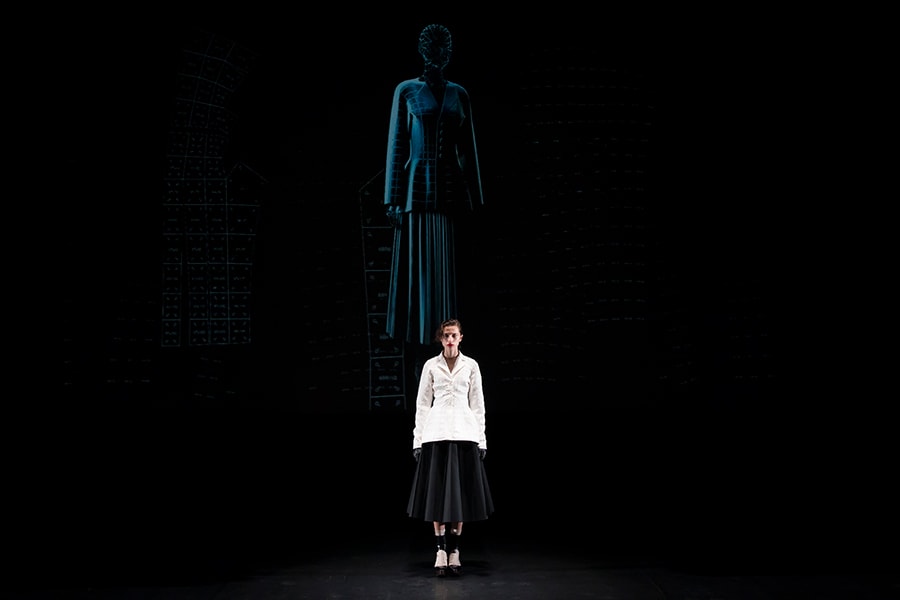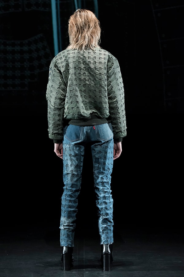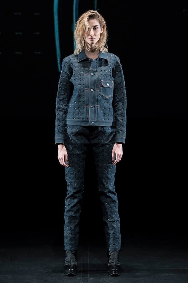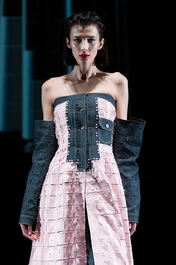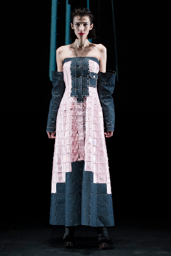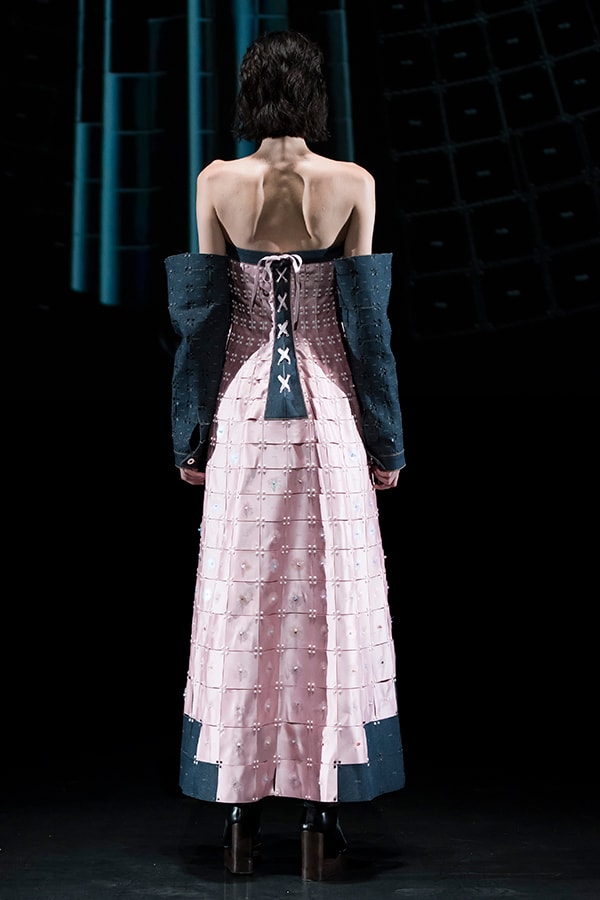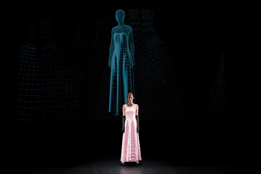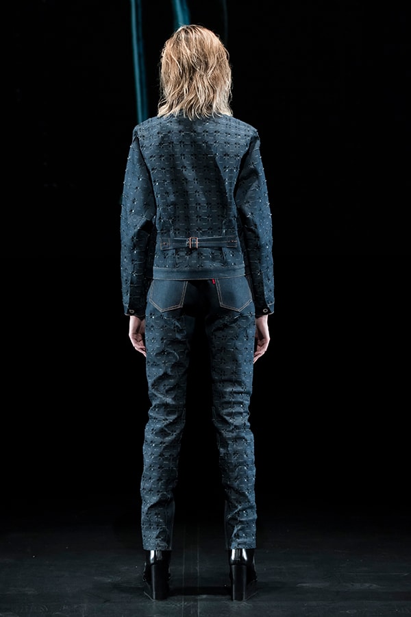 進化したこのまったく新しいテキスタイルの概念と、人類の衣服のアーカイブを融合させようと考えました。戦後に倦んでいた人々に優雅さと贅沢さを思い出させたオートクチュールと、大量生産品として世界的に影響力を広げていたジーンズ等、2つの対極的なデザインが象徴的な1950年代をモチーフに選びました。