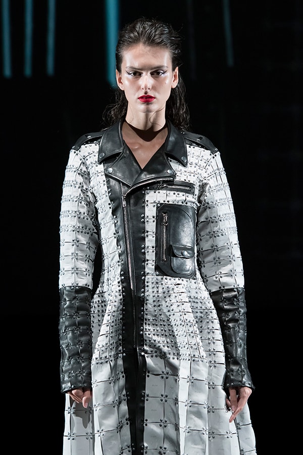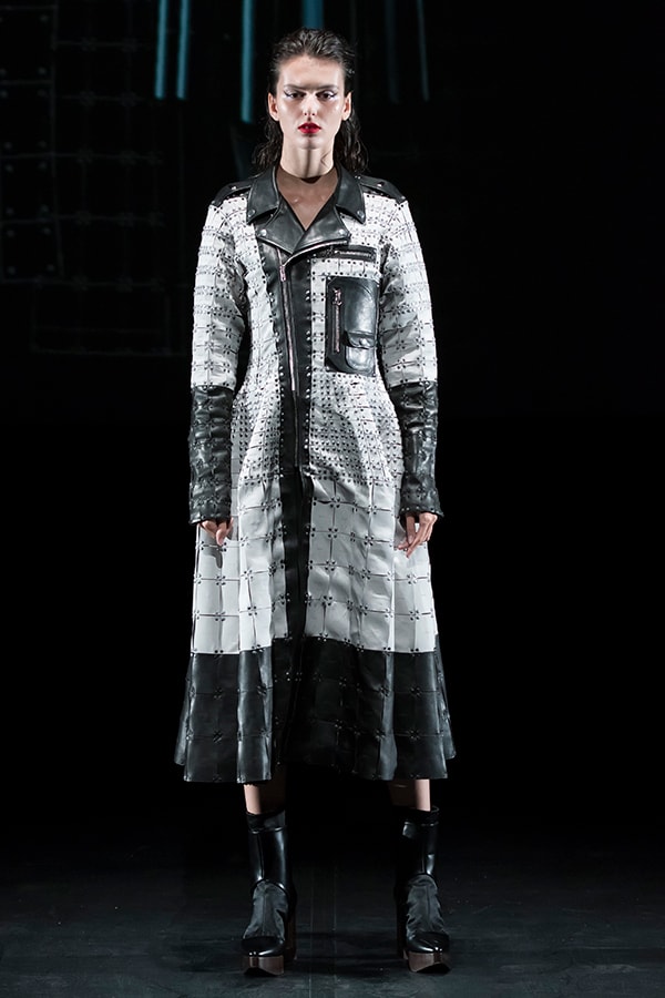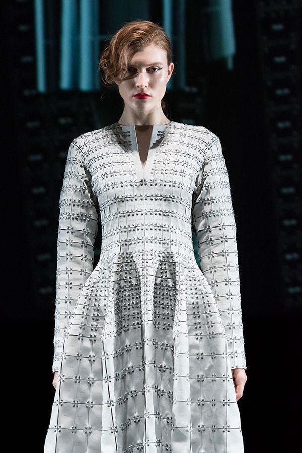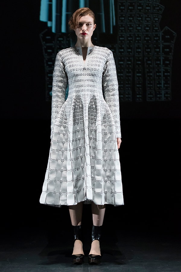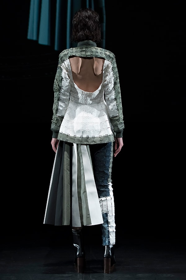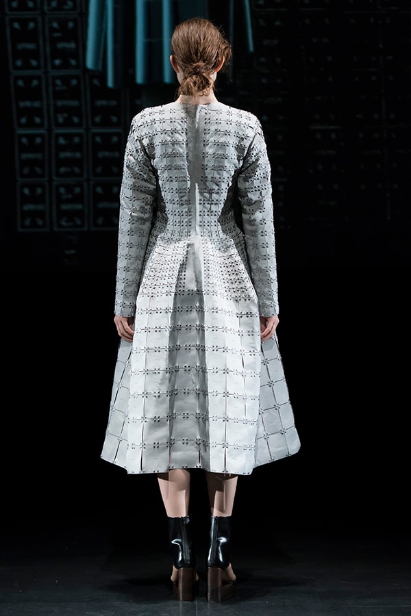 In the first collection, I presented the idea of clothes made by connecting small film parts. The second collection featured the UNIT CONSTRUCTED TEXTILE, a system that can reassemble unit parts many times. After countless trials and errors, we are closer to realizing our dream, as we have succeeded in significantly evolving the 3D UNIT CONSTRUCTED TEXTILE.