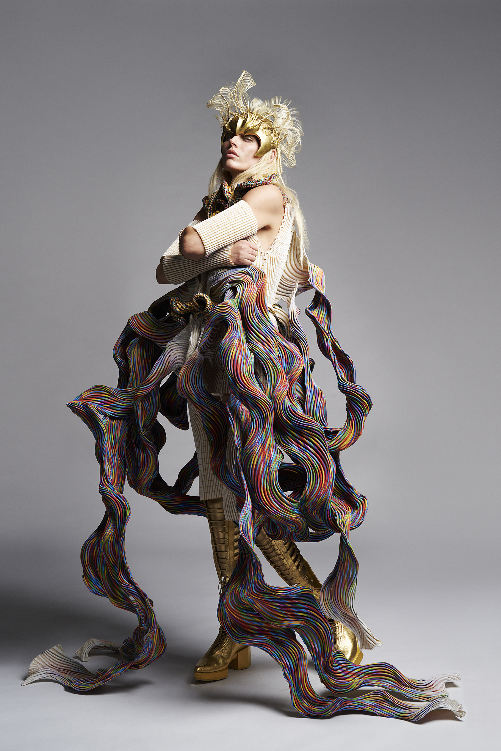 We invited Ms. Lauren Wasser to serve as our muse representing a new era of fashion and designed a couture piece based on the inspiration gained from dialogues held with her online.